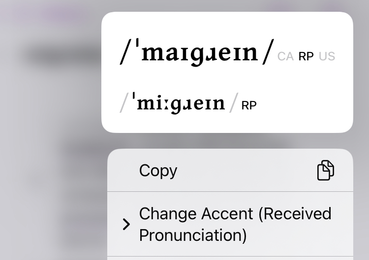 Long-pressing the IPA pronunciation or the loudspeaker button reveals a